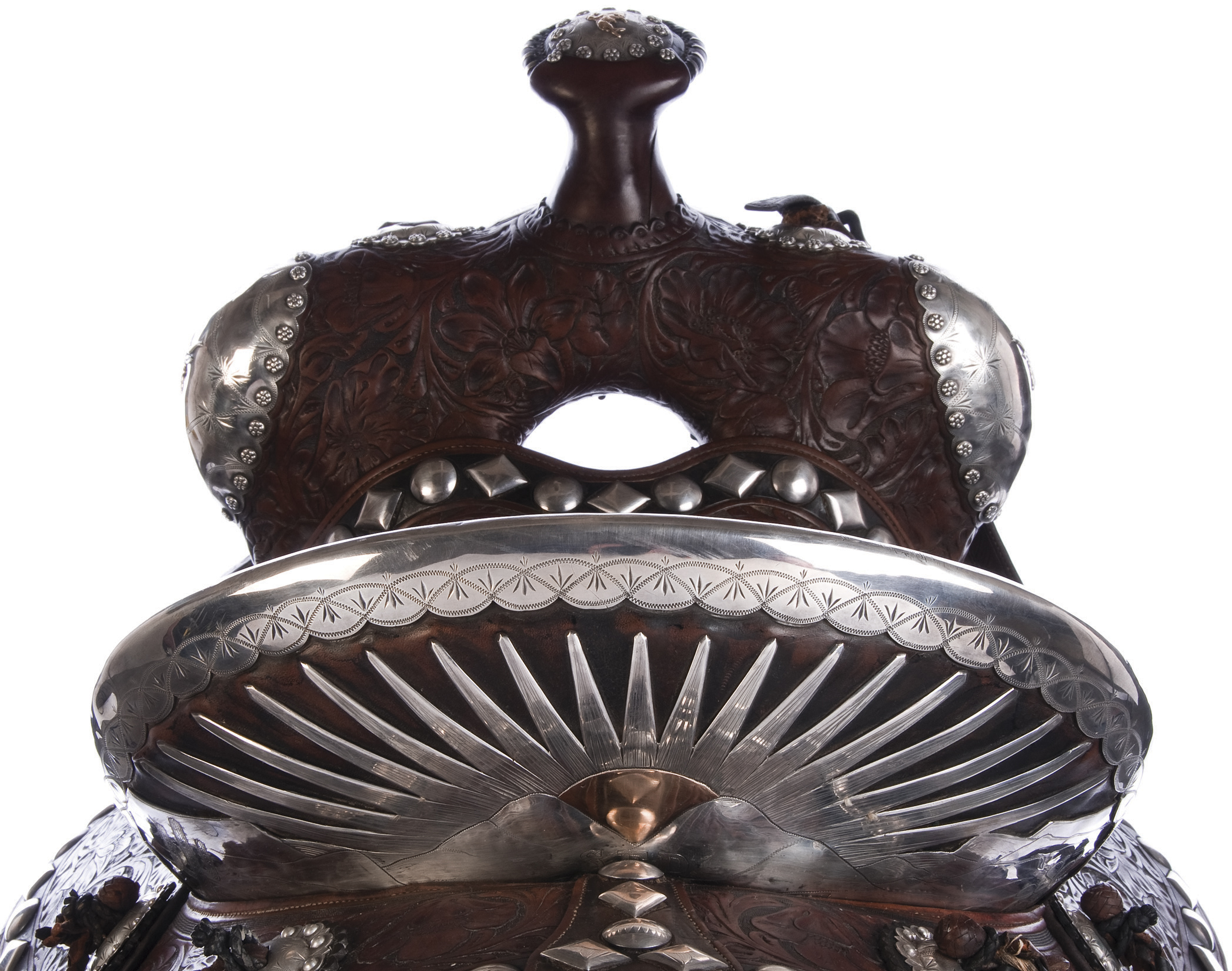 This saddle is made from premium full-grain leather and beautifully adorned with hand-engraved silver plates for an elegant, regal look. Beyond its beauty, it offers exceptional balance, deep seating, and superior comfort for hours of smooth riding.
